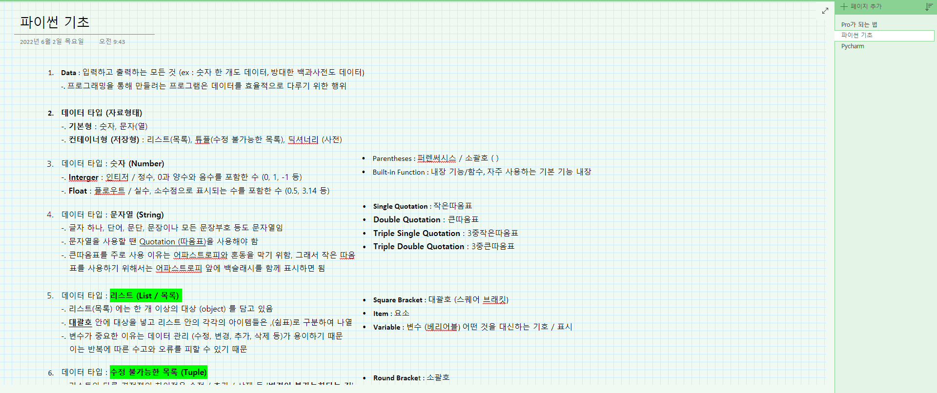 | [독학 파이썬 정리] 파이썬 자료형에 대해 알아보고 있습니다. (0) | 2022.08.25 |